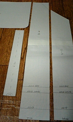↑これはね。ロズ用の「いいにおいがしそうなおねいさんのドレス」と、「エプロンドレス」の上部分と「ドロワーズ」「靴下」の型紙。